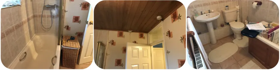 Mrs. Howard’s family bathroom was dated. The bathroom needed a complete revamp, the previous design was a traditional shell-shaped bathroom consisting of a bath with an overhead shower, basin, and toilet the ceiling was also wooden.